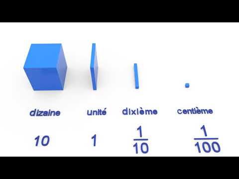 Si l'unité de référence est la plaquette, le gros cube représente une dizaine c'est-à-dire dix unités, le bâtonnet représente un dixième de la plaquette et le petit cube le centième de la plaquette.