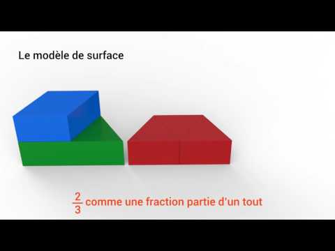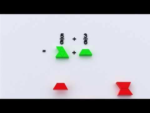 À l'aide du modèle de surface, illustrons par 2 trapèzes rouges accolés, comme l'indique la forme, l'unité de référence. Ce tout peut être subdivisé en 6 parties égales en d'autres termes par 6 triangles verts. Chaque triangle représente 1/6 par rapport à l'unité de référence. 5/6 représente 5 triangles verts parmi les 6 qui structurent le tout de référence et