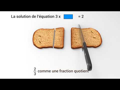 D'où la nécessité de définir un nouvel ensemble de nombres, les rationnels, dans lequel se trouve le résultat de la division d'entiers. Par exemple, la solution de l'équation : 3 x ? = 2. Cette solution 2/3 est un nombre rationnel que l'on écrira sous la forme d'une fraction d'entiers.